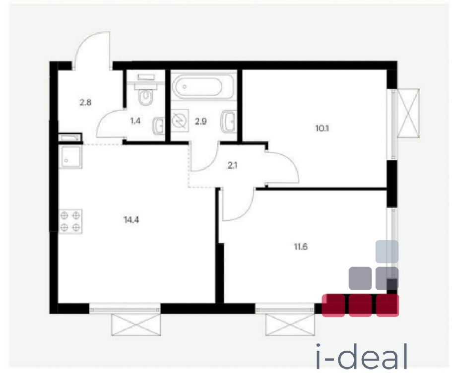 Продаётся по переуступке отличная 2-комн. квартира площадью 45,2 кв.м на 7 этаже 9 этажного дома проекта ПИК "Кузьминский лес."
